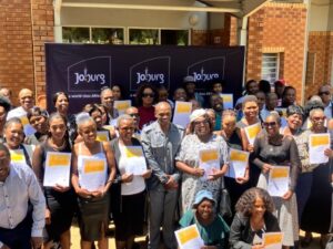 It was a joyous occasion for the young and old as they celebrated receiving their e-learning certificates after completing the Microsoft Online course programme. The Member of the Mayoral Committee for Community Development in the City of Johannesburg, Cllr Tebogo Nkokou, attended the Digital Literacy Programme Awards, honouring 100 youth and adults who completed digital skills training.